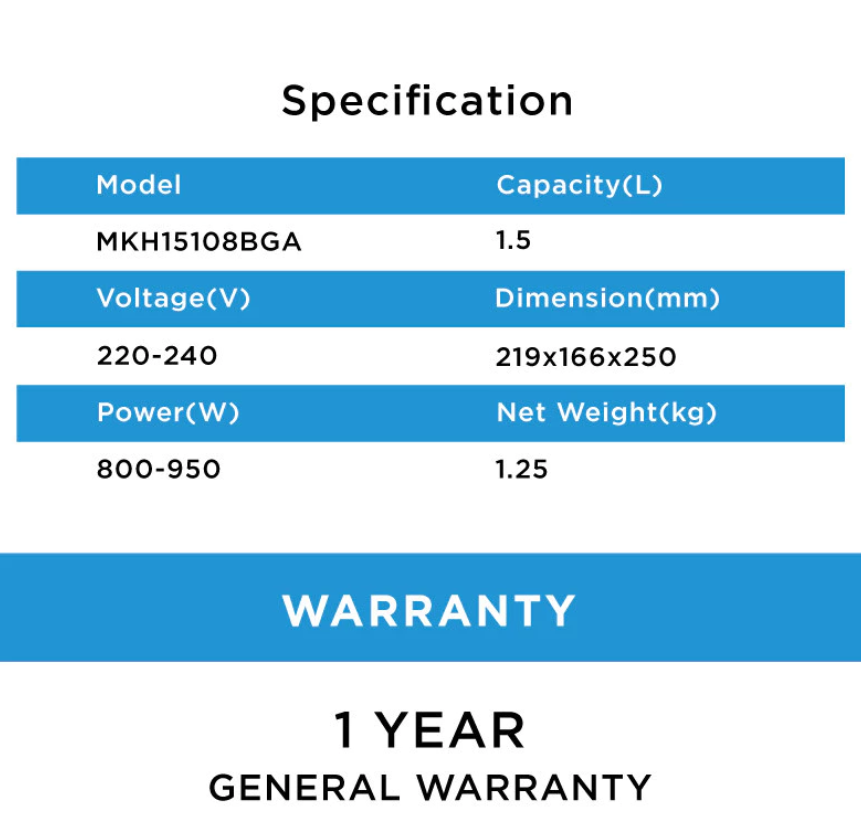 MIDEA 1.5L MKH15108BGA HEALTHY POT KETTLE GLASS