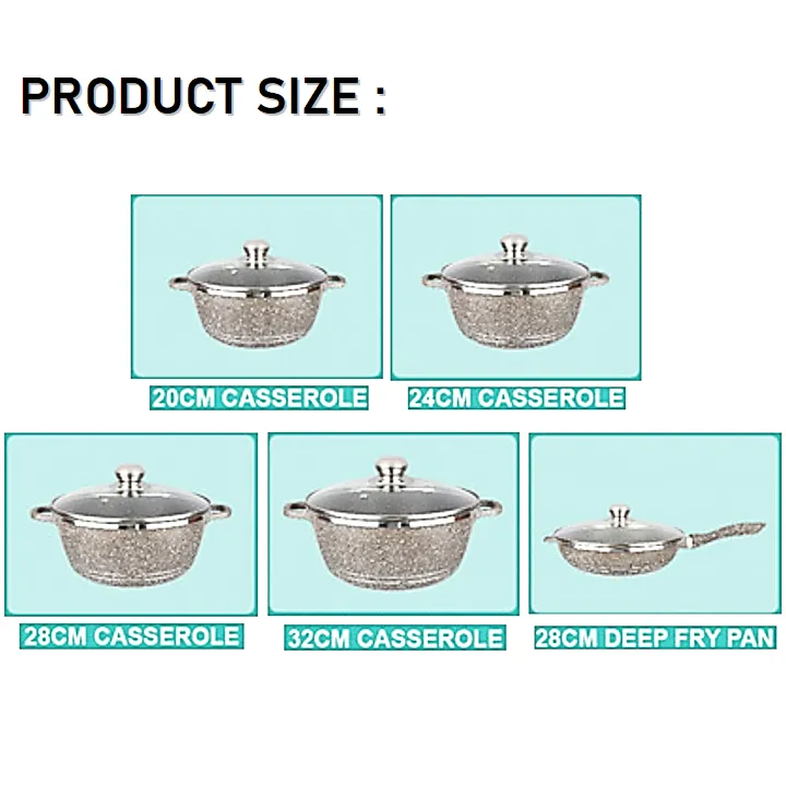 - FULL SET 12 PCS Granite Aluminium Cookware Set